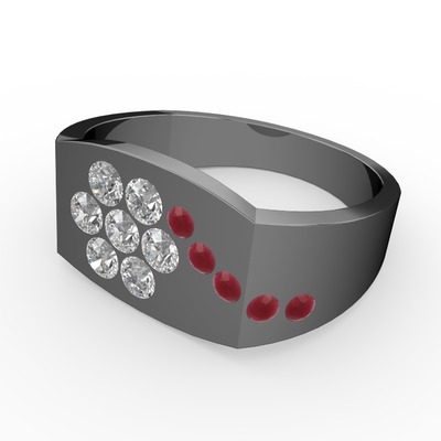 Kök yakut ve swarovski 925 ayar siyah rodyum kaplama gümüş yüzük