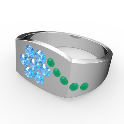 Kök zümrüt ve akuamarin 14 ayar beyaz altın yüzük