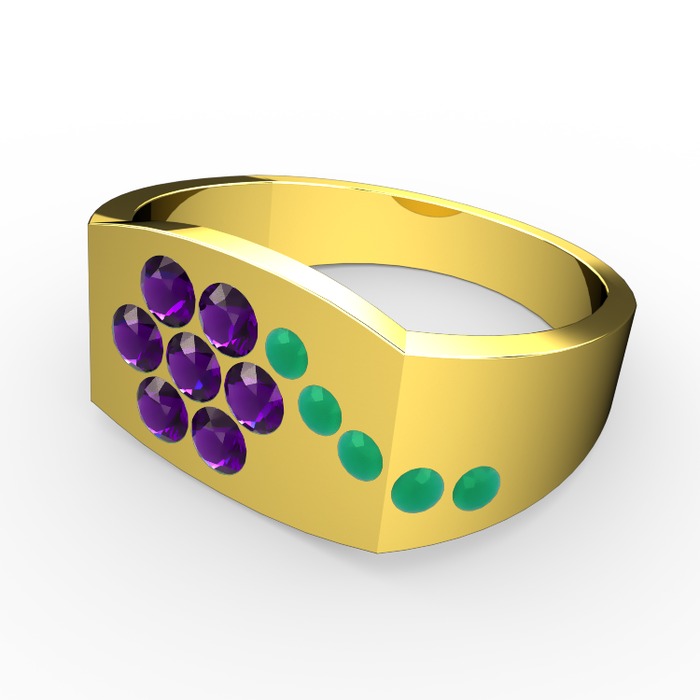 Kök zümrüt ve ametist 14 ayar altın yüzük