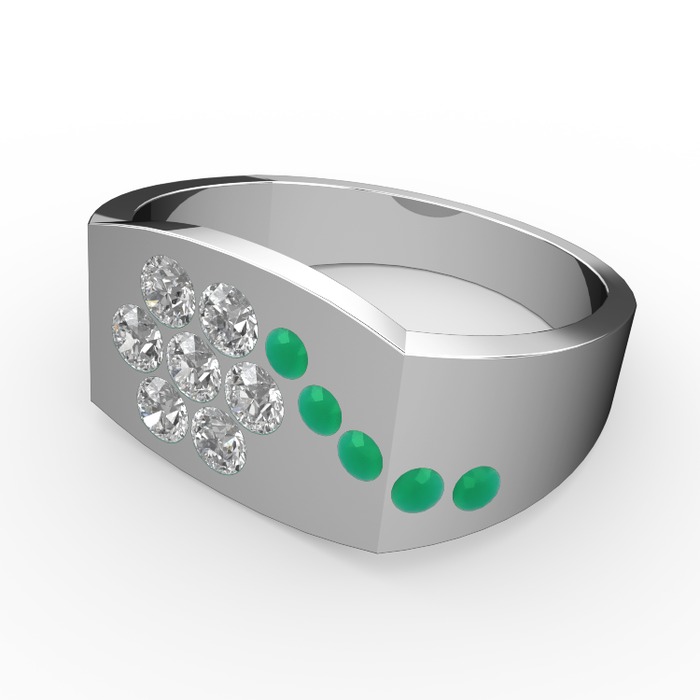 Kök zümrüt ve beyaz zirkon 18 ayar beyaz altın yüzük