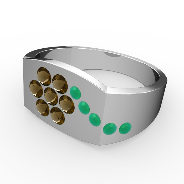 Kök zümrüt ve dumanlı kuvars 925 ayar gümüş yüzük