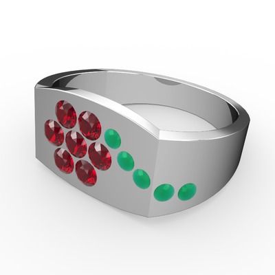 Kök zümrüt ve garnet 8 ayar beyaz altın yüzük