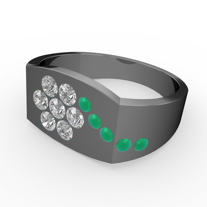 Kök zümrüt ve swarovski 925 ayar siyah rodyum kaplama gümüş yüzük