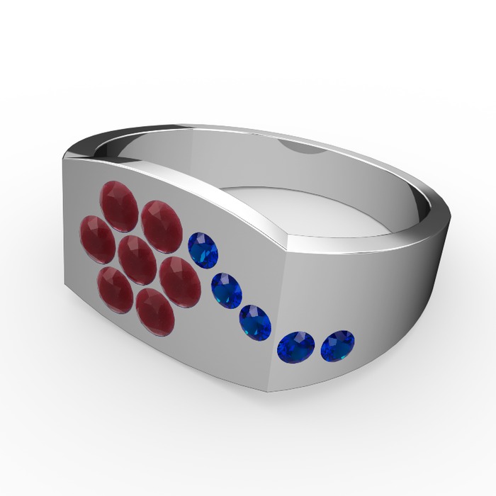 Lab safir ve kök yakut 18 ayar beyaz altın yüzük