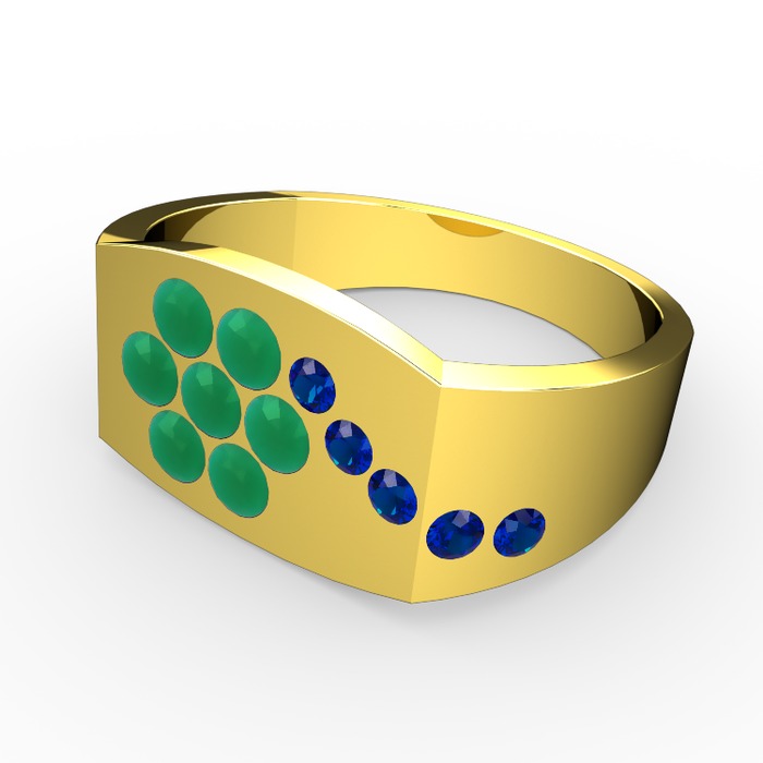 Lab safir ve kök zümrüt 925 ayar altın kaplama gümüş yüzük