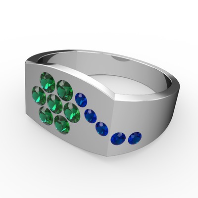 Lab safir ve yeşil kuvars 8 ayar beyaz altın yüzük