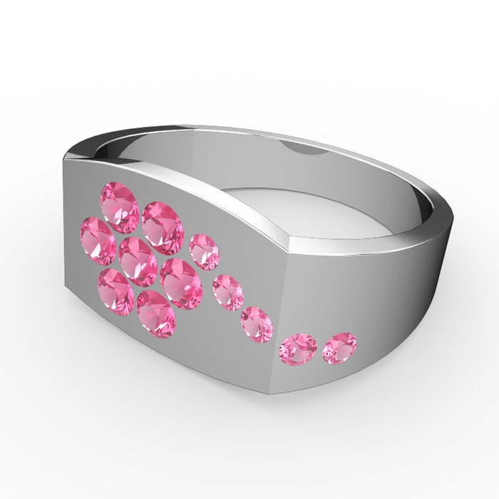 Pembe kuvars 14 ayar beyaz altın yüzük