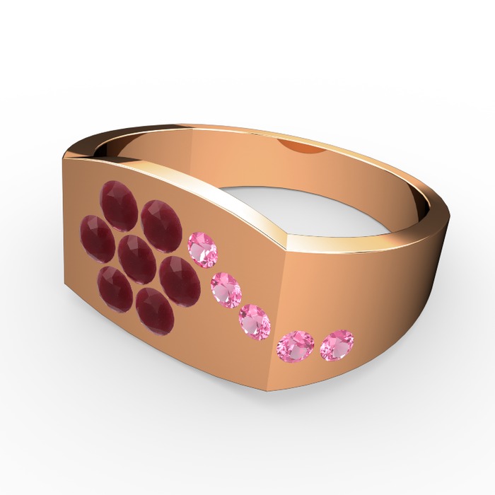 Pembe kuvars ve kök yakut 925 ayar rose altın kaplama gümüş yüzük