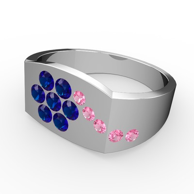 Pembe kuvars ve lab safir 14 ayar beyaz altın yüzük