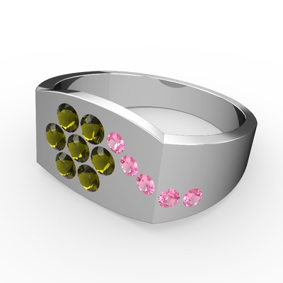 Pembe kuvars ve peridot 18 ayar beyaz altın yüzük