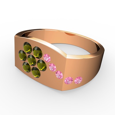 Pembe kuvars ve peridot 8 ayar rose altın yüzük