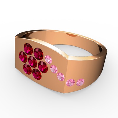 Pembe kuvars ve rodolit garnet 18 ayar rose altın yüzük