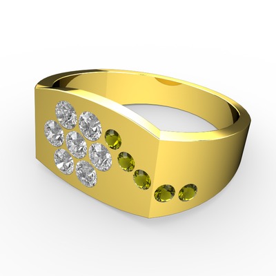 Peridot ve beyaz zirkon 14 ayar altın yüzük