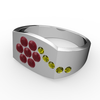 Peridot ve kök yakut 8 ayar beyaz altın yüzük