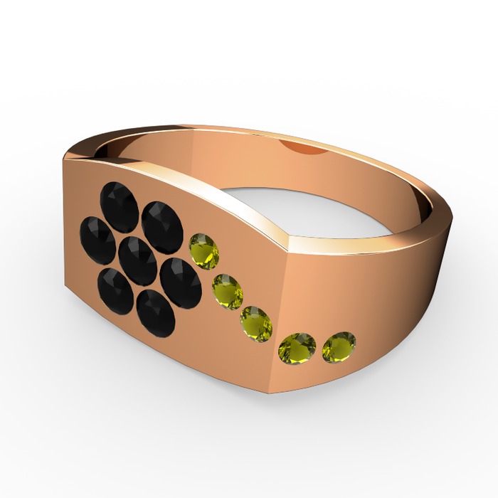 Peridot ve siyah zirkon 18 ayar rose altın yüzük