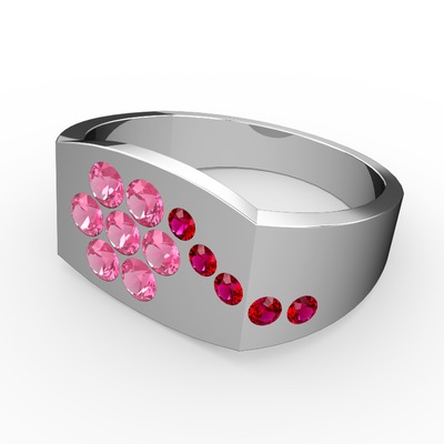 Rodolit garnet ve pembe kuvars 925 ayar gümüş yüzük