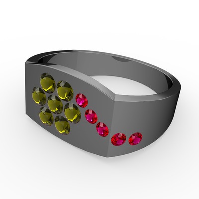 Rodolit garnet ve peridot 925 ayar siyah rodyum kaplama gümüş yüzük