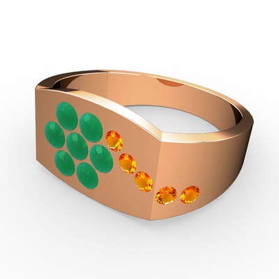 Sitrin ve kök zümrüt 14 ayar rose altın yüzük