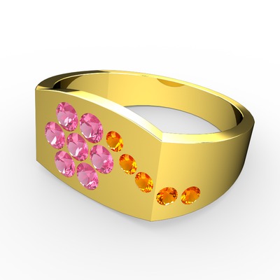 Sitrin ve pembe kuvars 18 ayar altın yüzük