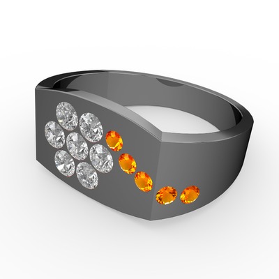 Sitrin ve swarovski 925 ayar siyah rodyum kaplama gümüş yüzük