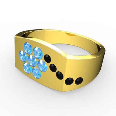 Siyah zirkon ve akuamarin 14 ayar altın yüzük