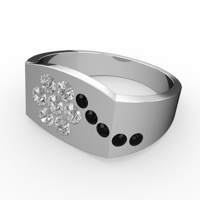 Siyah zirkon ve beyaz zirkon 18 ayar beyaz altın yüzük