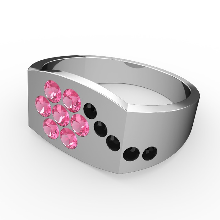 Siyah zirkon ve pembe kuvars 925 ayar gümüş yüzük
