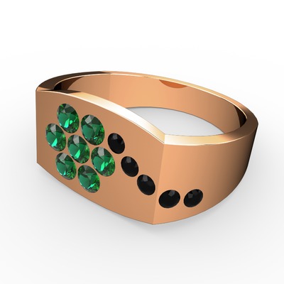 Siyah zirkon ve yeşil kuvars 925 ayar rose altın kaplama gümüş yüzük