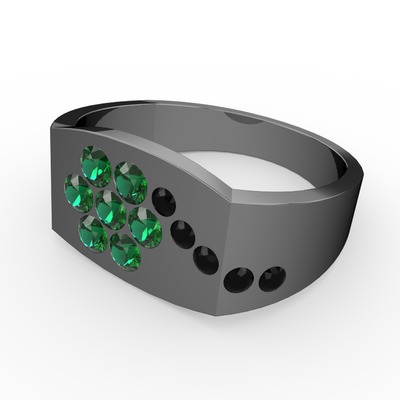 Siyah zirkon ve yeşil kuvars 925 ayar siyah rodyum kaplama gümüş yüzük