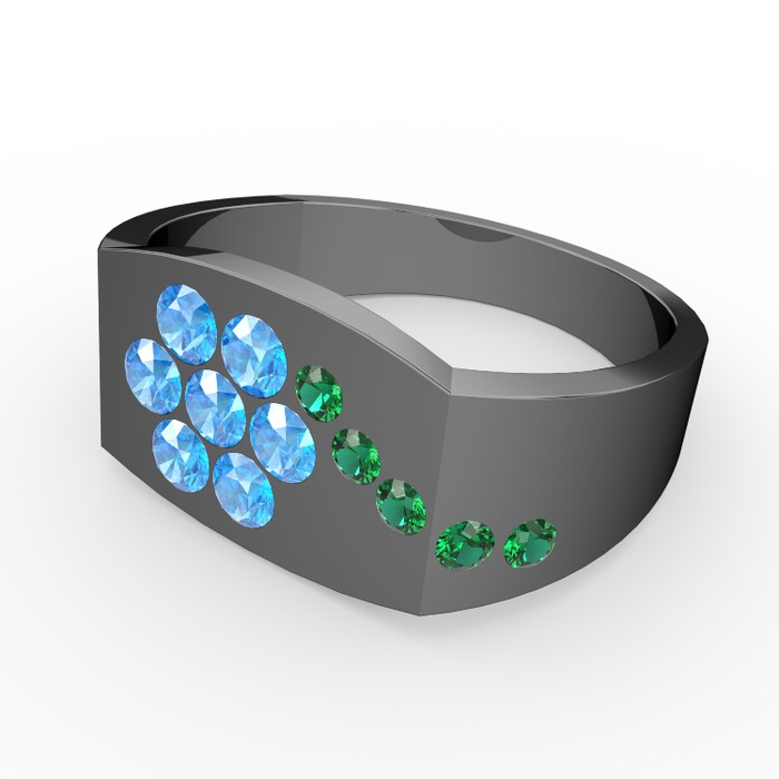 Yeşil kuvars ve akuamarin 925 ayar siyah rodyum kaplama gümüş yüzük