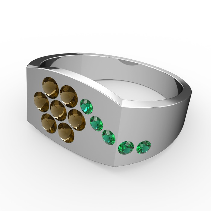 Yeşil kuvars ve dumanlı kuvars 18 ayar beyaz altın yüzük