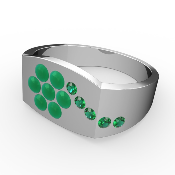 Yeşil kuvars ve kök zümrüt 18 ayar beyaz altın yüzük