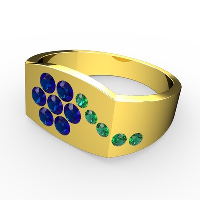 Yeşil kuvars ve lab safir 925 ayar altın kaplama gümüş yüzük