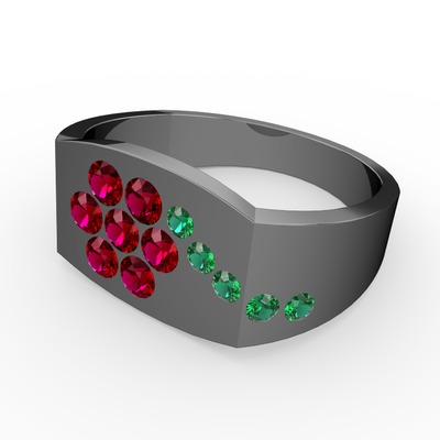 Yeşil kuvars ve rodolit garnet 925 ayar siyah rodyum kaplama gümüş yüzük