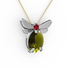 Peridot ve garnet 18 ayar altın kolye (40 cm gümüş rolo zincir)