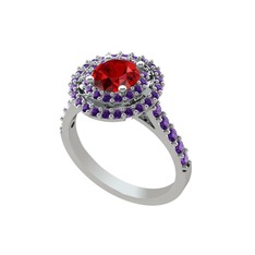 Pırlanta ve garnet 14 ayar beyaz altın yüzük (0.24 karat)