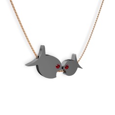 Garnet 925 ayar siyah rodyum kaplama gümüş kolye (40 cm rose altın rolo zincir)