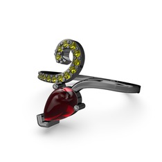 Garnet ve peridot 925 ayar siyah rodyum kaplama gümüş yüzük