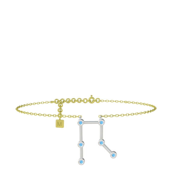Akuamarin 8 ayar beyaz altın bilezik (20 cm altın rolo zincir)