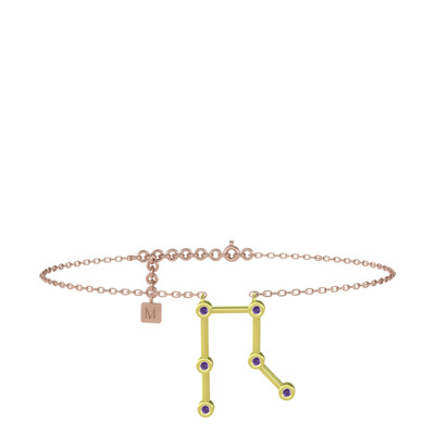 Ametist 18 ayar altın bilezik (20 cm gümüş rolo zincir)