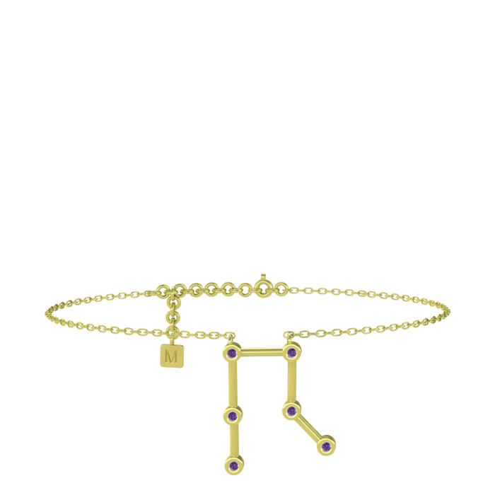 Ametist 18 ayar altın bilezik (20 cm gümüş rolo zincir)