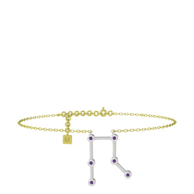 Ametist 18 ayar beyaz altın bilezik (20 cm altın rolo zincir)
