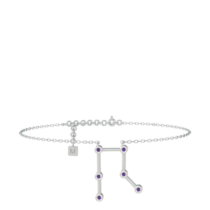 Ametist 18 ayar beyaz altın bilezik (20 cm beyaz altın rolo zincir)