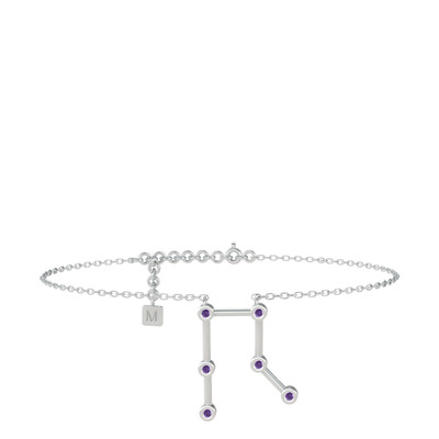 Ametist 18 ayar beyaz altın bilezik (20 cm gümüş rolo zincir)