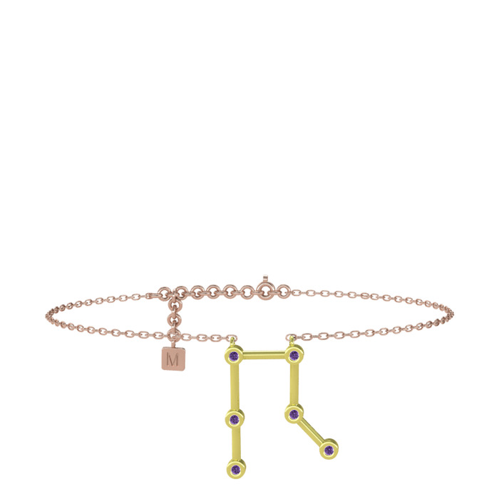Ametist 925 ayar altın kaplama gümüş bilezik (20 cm rose altın rolo zincir)