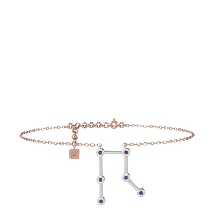 Ametist 925 ayar gümüş bilezik (20 cm rose altın rolo zincir)