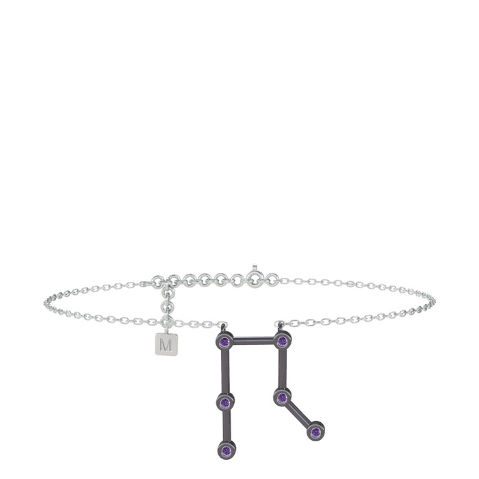 Ametist 925 ayar siyah rodyum kaplama gümüş bilezik (20 cm beyaz altın rolo zincir)