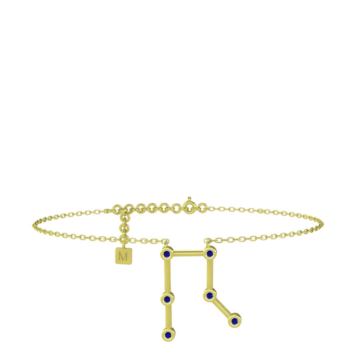 Lab safir 18 ayar altın bilezik (20 cm gümüş rolo zincir)