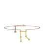 Pembe kuvars 925 ayar altın kaplama gümüş bilezik (20 cm rose altın rolo zincir)