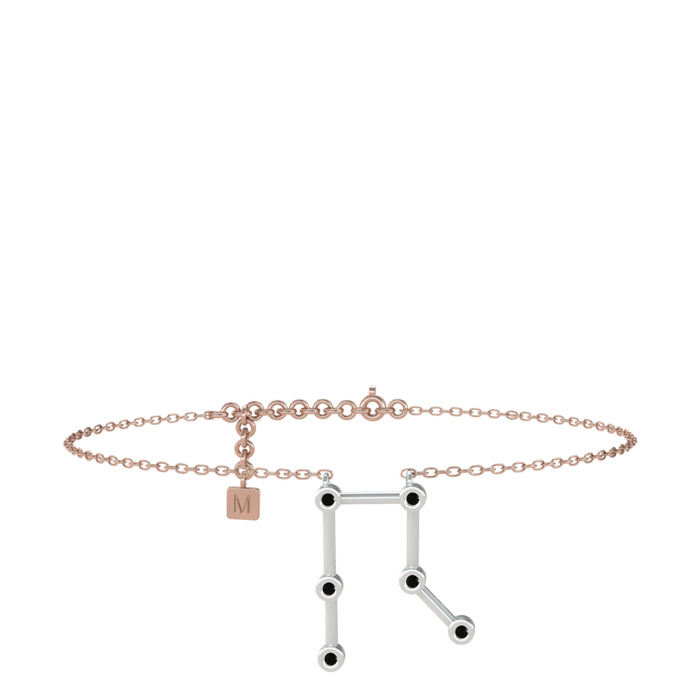 Siyah zirkon 18 ayar beyaz altın bilezik (20 cm rose altın rolo zincir)